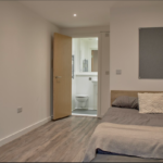 This studio has a modern finish throughout and features it's own sleeping space and shower room with a shared kitchen space.