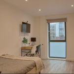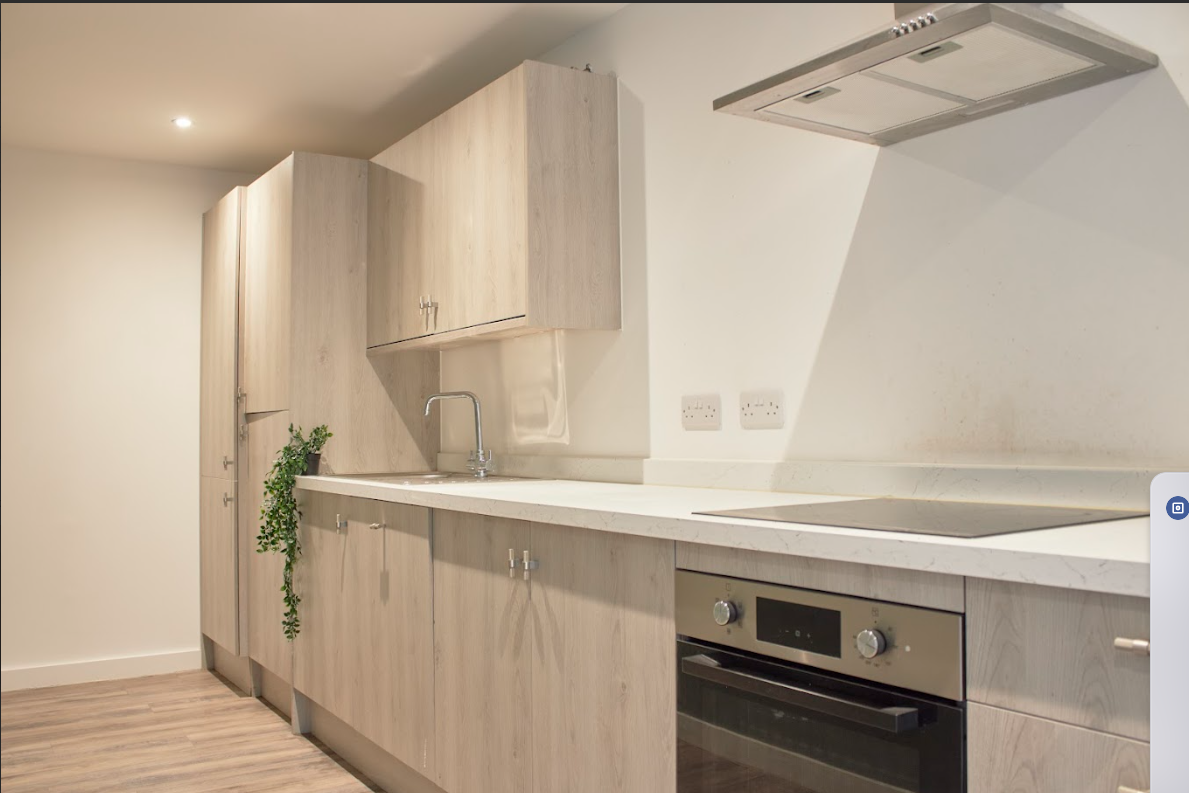 This studio has a modern finish throughout and features it's own sleeping space and shower room with a shared kitchen space.
