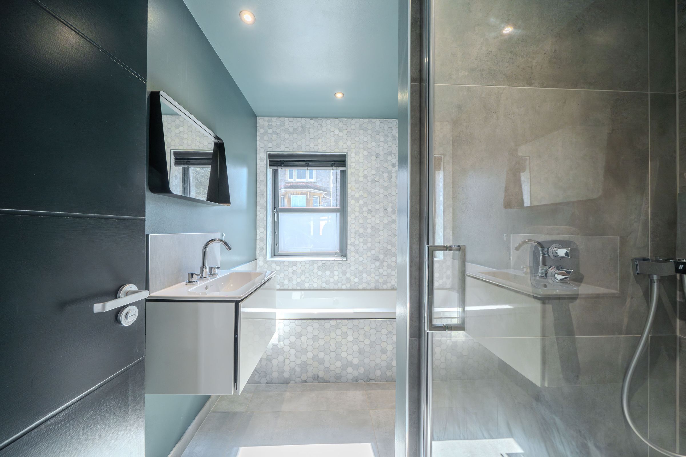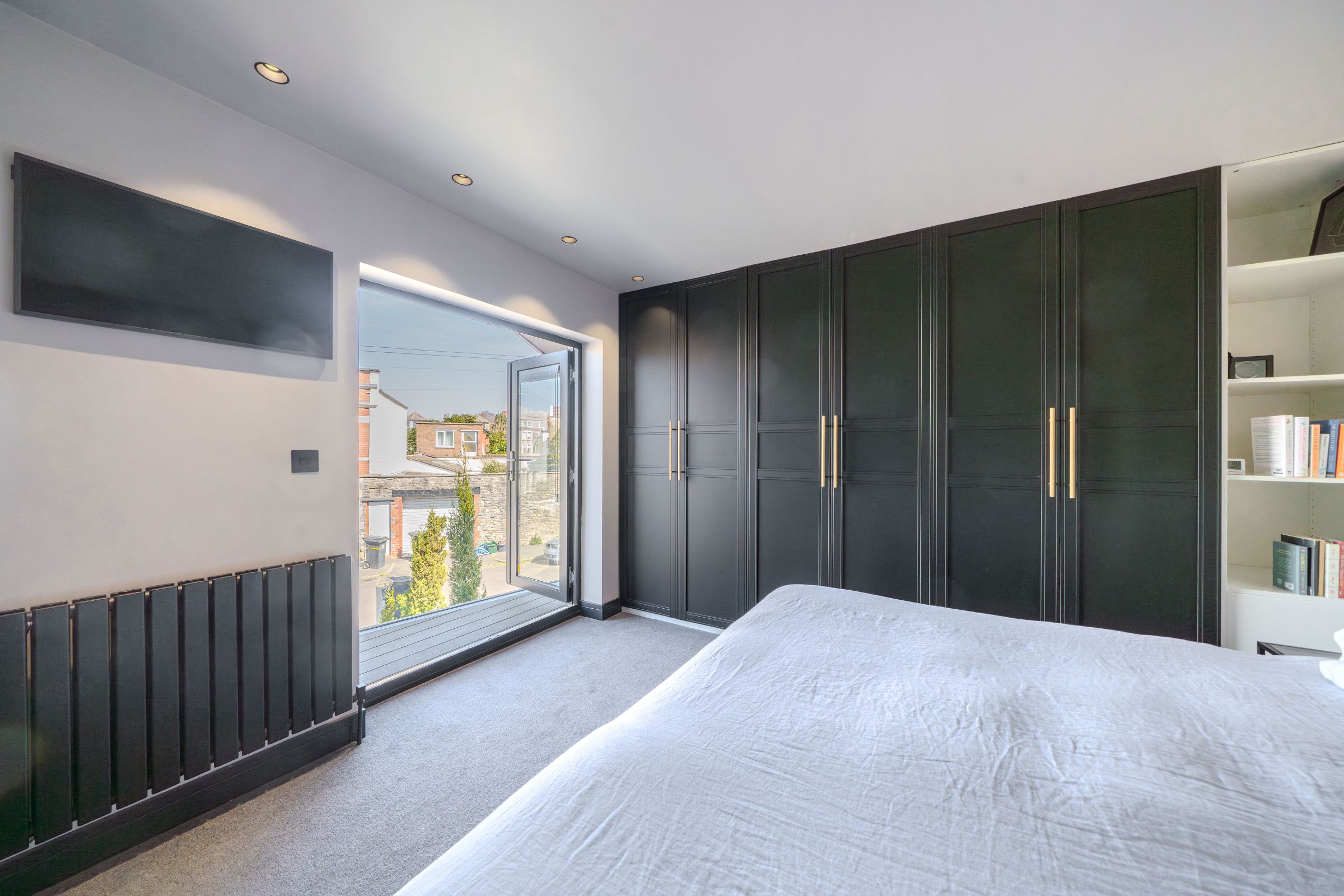 The first-floor landing is naturally bright, benefiting from a Velux skylight, and provides access to all accommodation. The impressive principal bedroom is a generously sized double, featuring extensive built-in wardrobes, a private balcony, and a luxurious freestanding bathtub. The en suite is immaculately presented and finished to a high standard, comprising tiled flooring and partially tiled walls, a double-glazed window to the front aspect, a large wash basin with mixer tap, WC, and a spacious walk-in shower with a rainfall shower head. Further benefits include an extractor fan, a heated towel rail, a large wall-mounted mirror, and built-in shower storage. The second bedroom is a generously proportioned double, complete with built-in wardrobes. The third bedroom is versatile and can function as a double bedroom, home office, or nursery, as it is currently being used. The family bathroom is elegantly appointed with tiled flooring and partially tiled walls, creating a clean and contemporary feel. It features a bath and a separate shower cubicle with both handheld and rainfall shower heads, a stylish wash basin with mixer tap, WC, heated towel rail, and an extractor fan, combining practicality with a touch of indulgence.